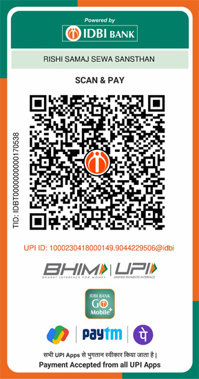 ऋषि समाज सेवा संस्थान मे आपका स्वागत है। पंजीकरण से पूर्व, संस्थान की नियमावली का अध्ययन कर लें व QR Code पर पंजीकरण शुल्क ₹ 100 का सहयोग कर स्क्रीनशॉट सेव कर लें। पंजीकरण की पूर्ण जानकारी के लिए विडियो देखें।